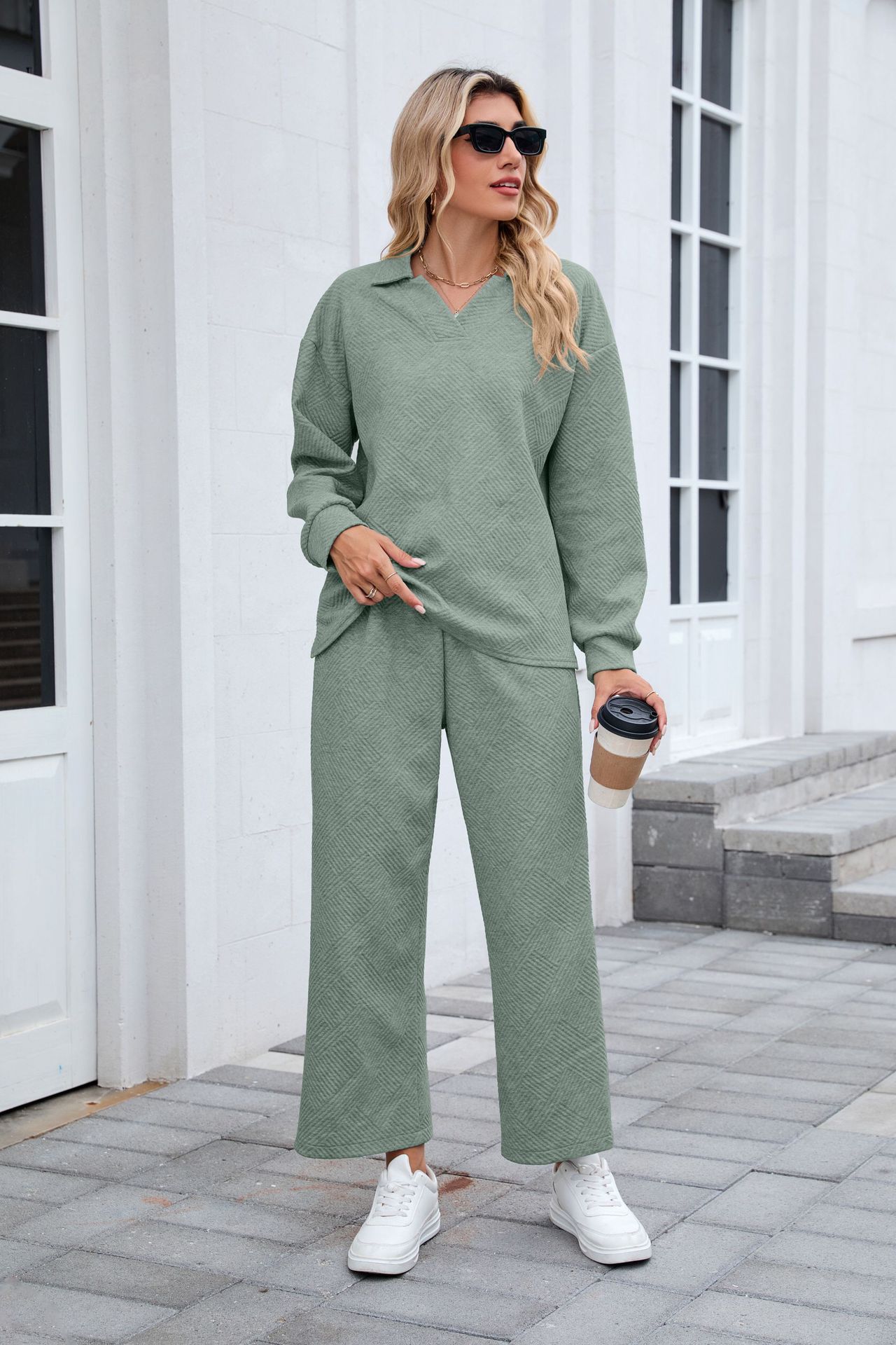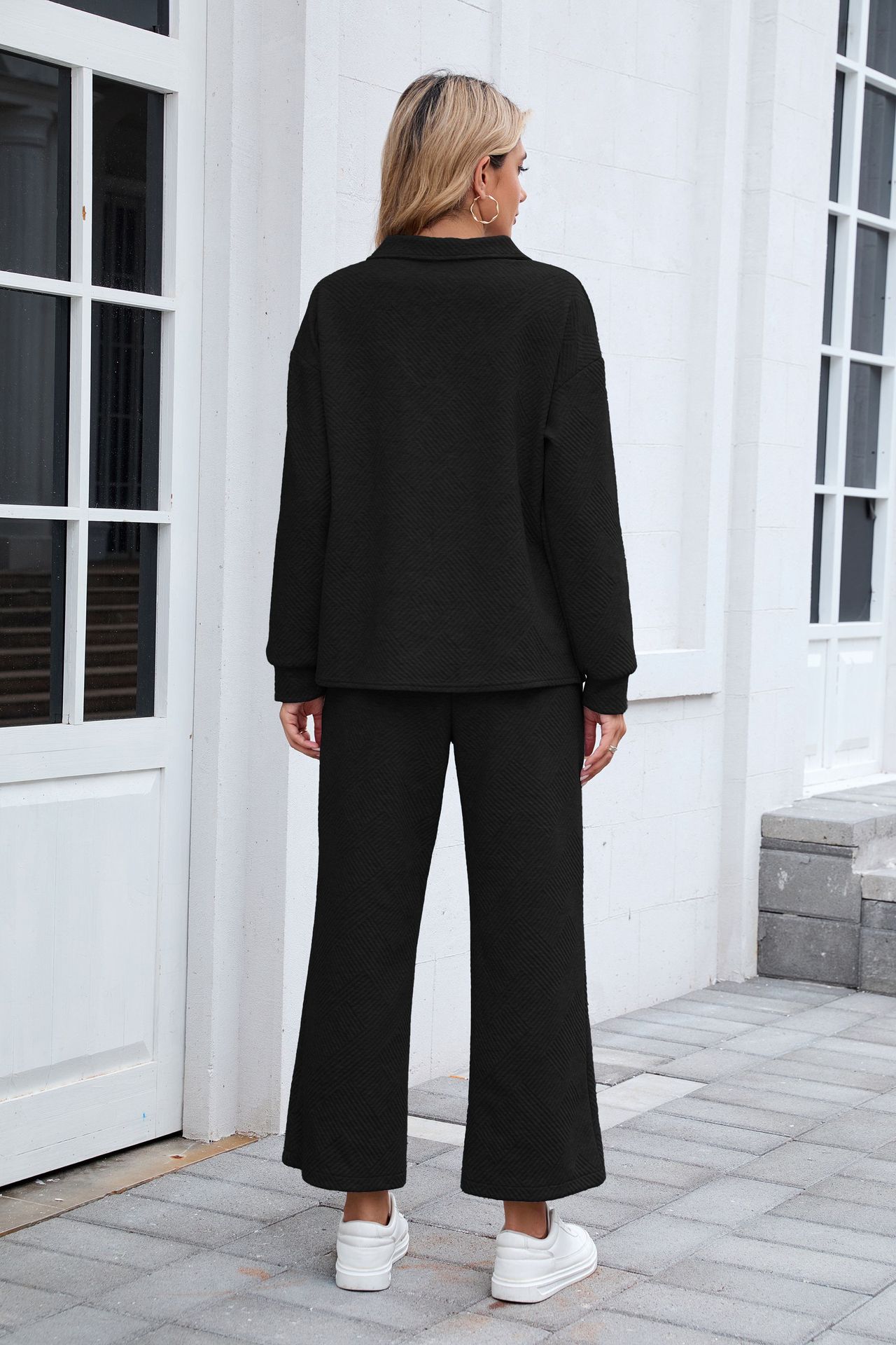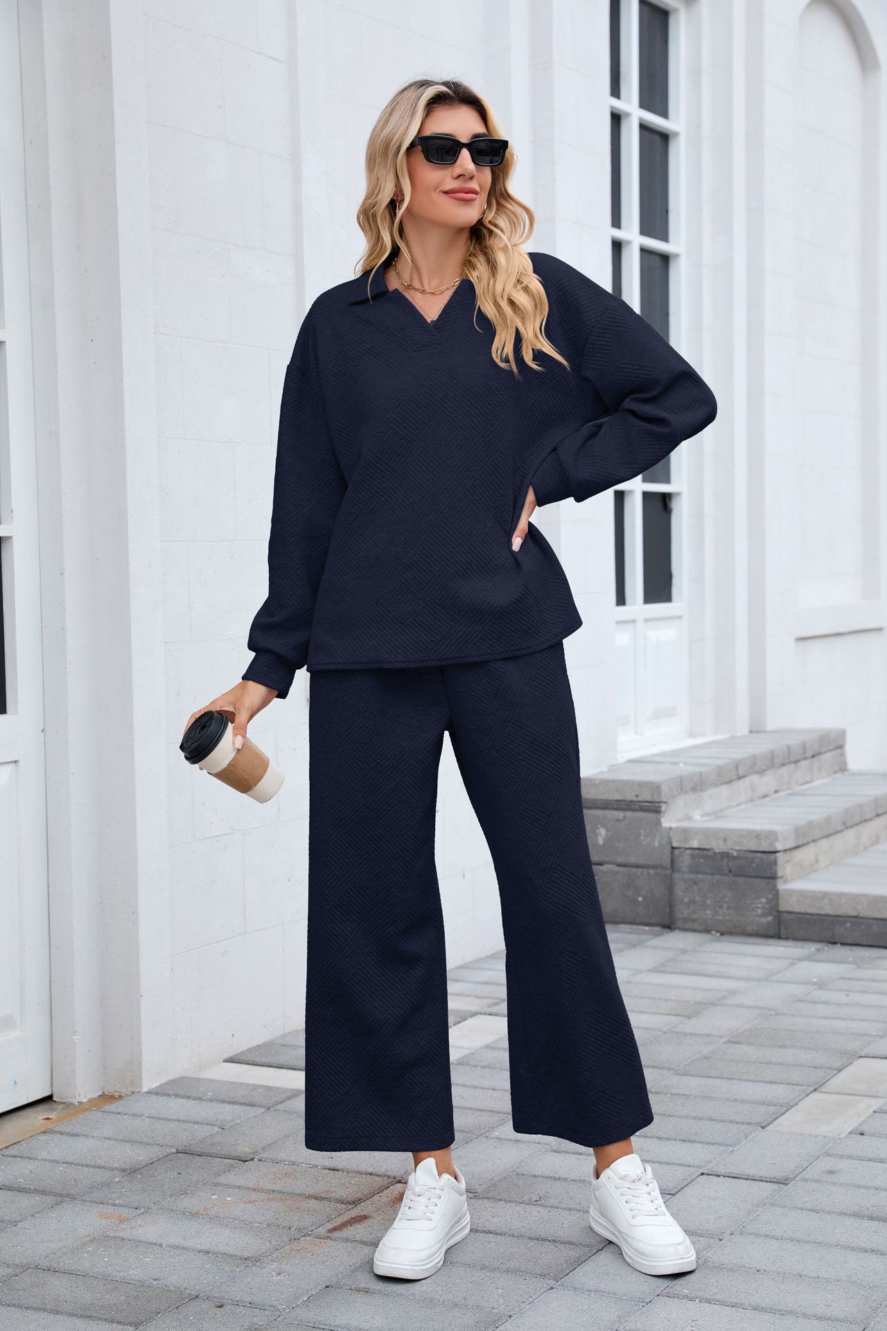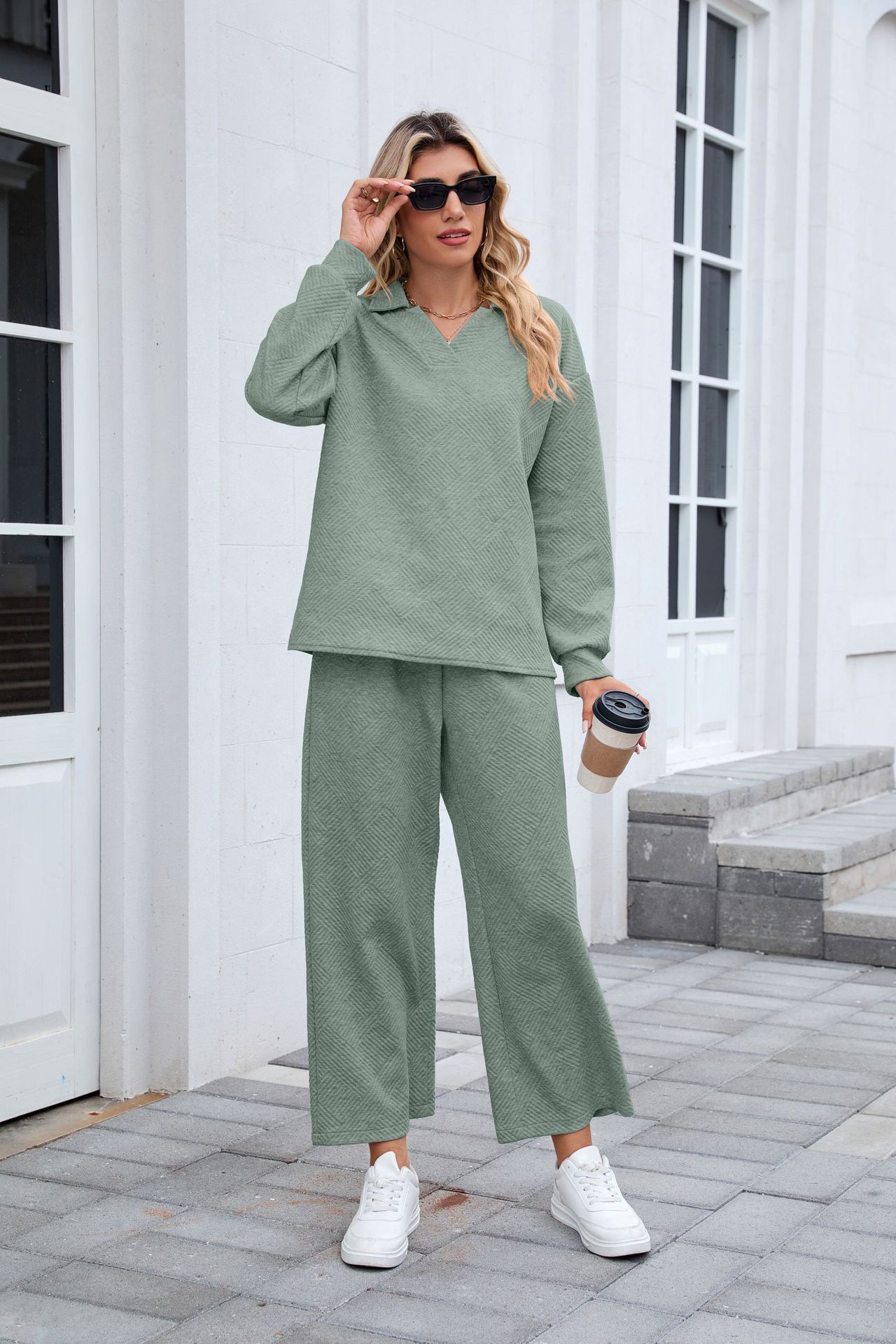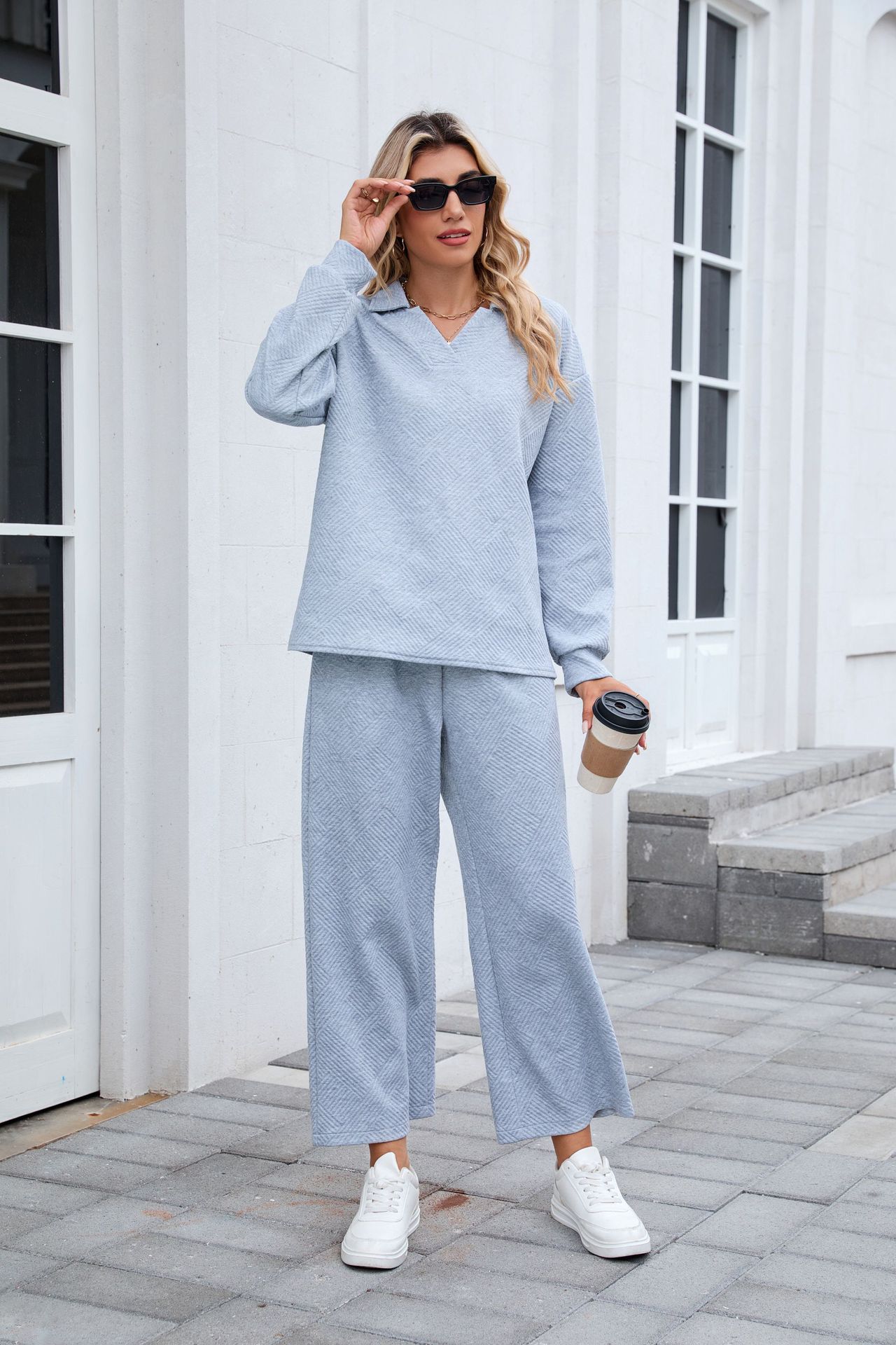 - ~ Comfort Fit – Elastic waist cropped pants + regular long sleeves.