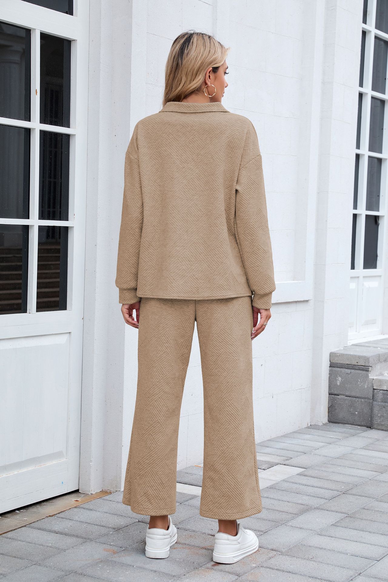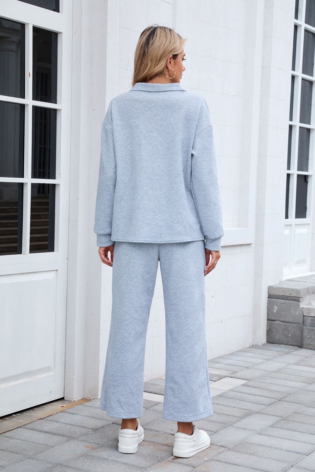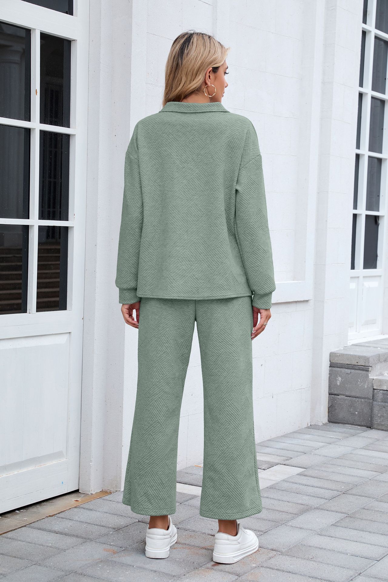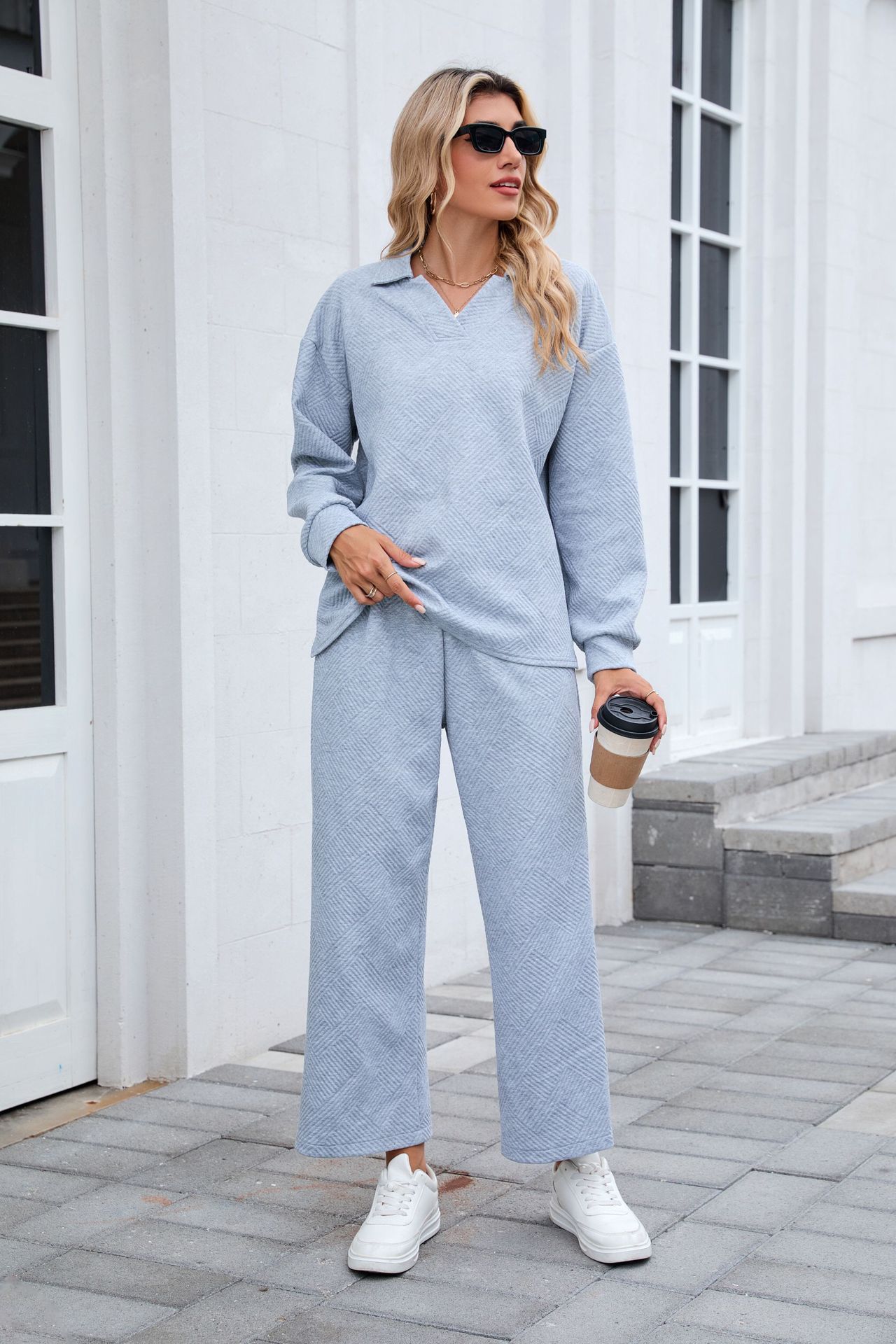 - ~ Comfort Fit – Elastic waist cropped pants + regular long sleeves.