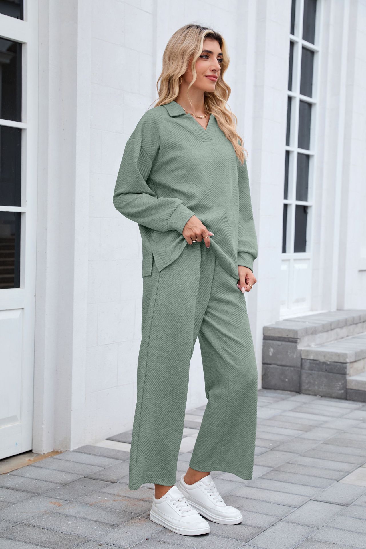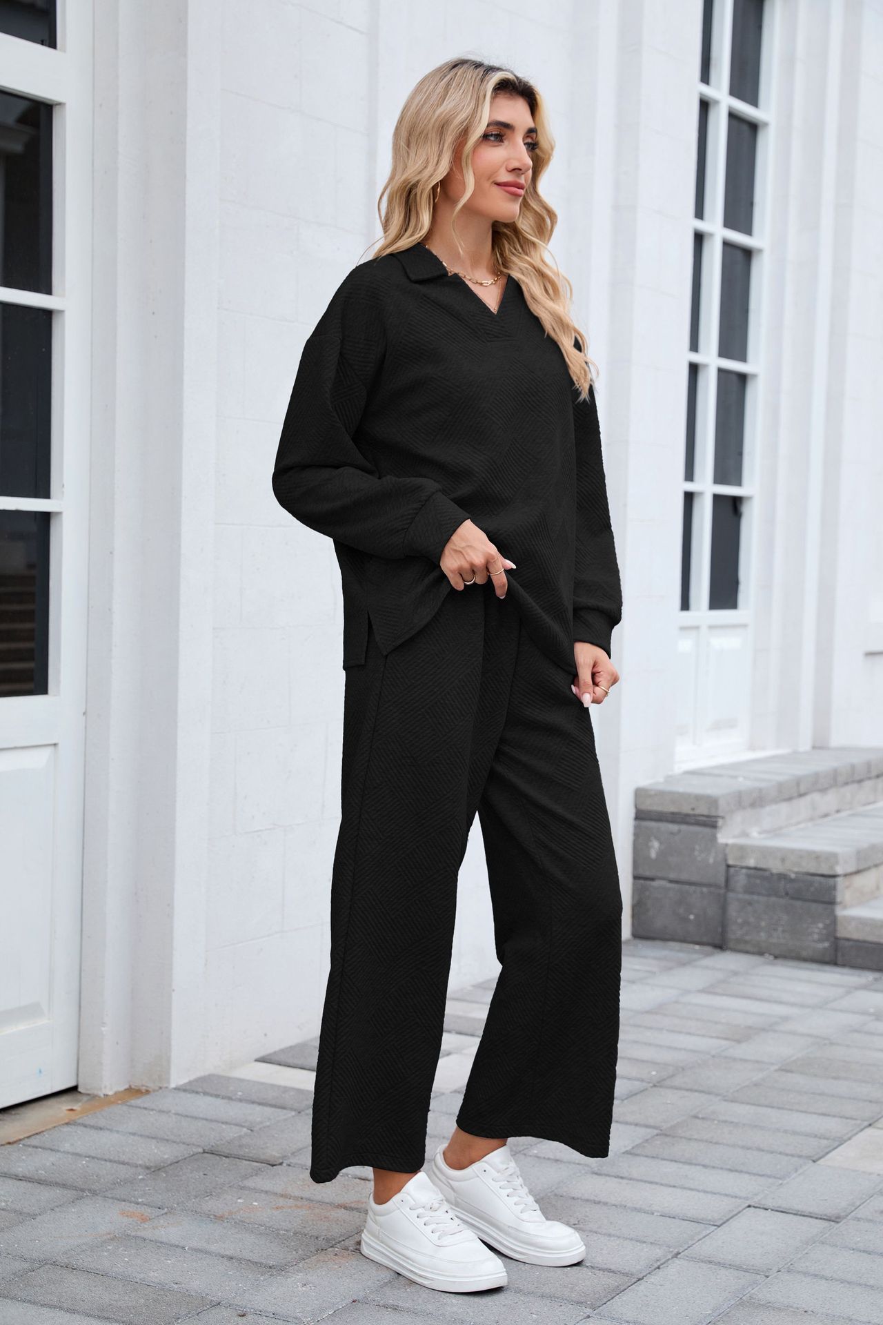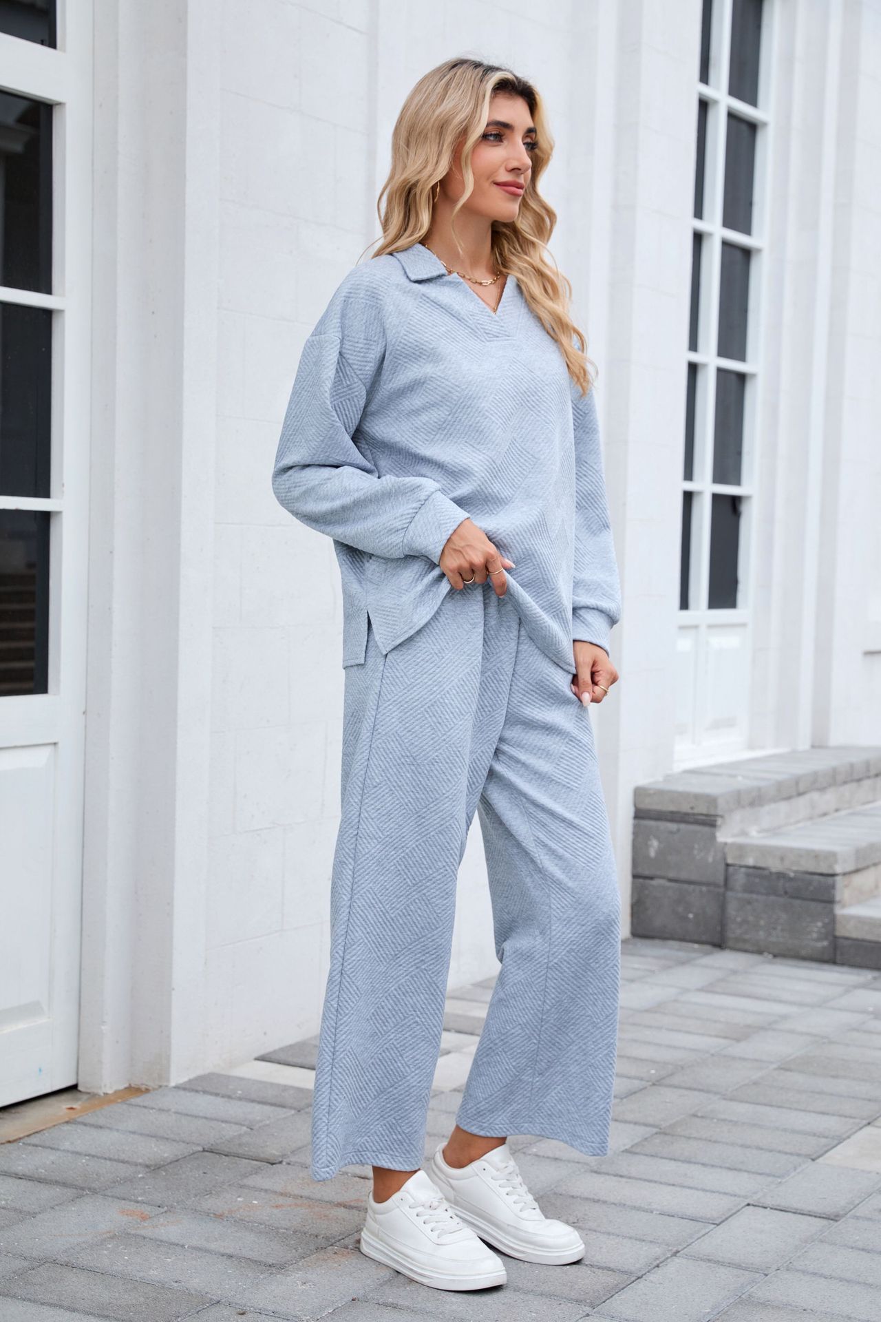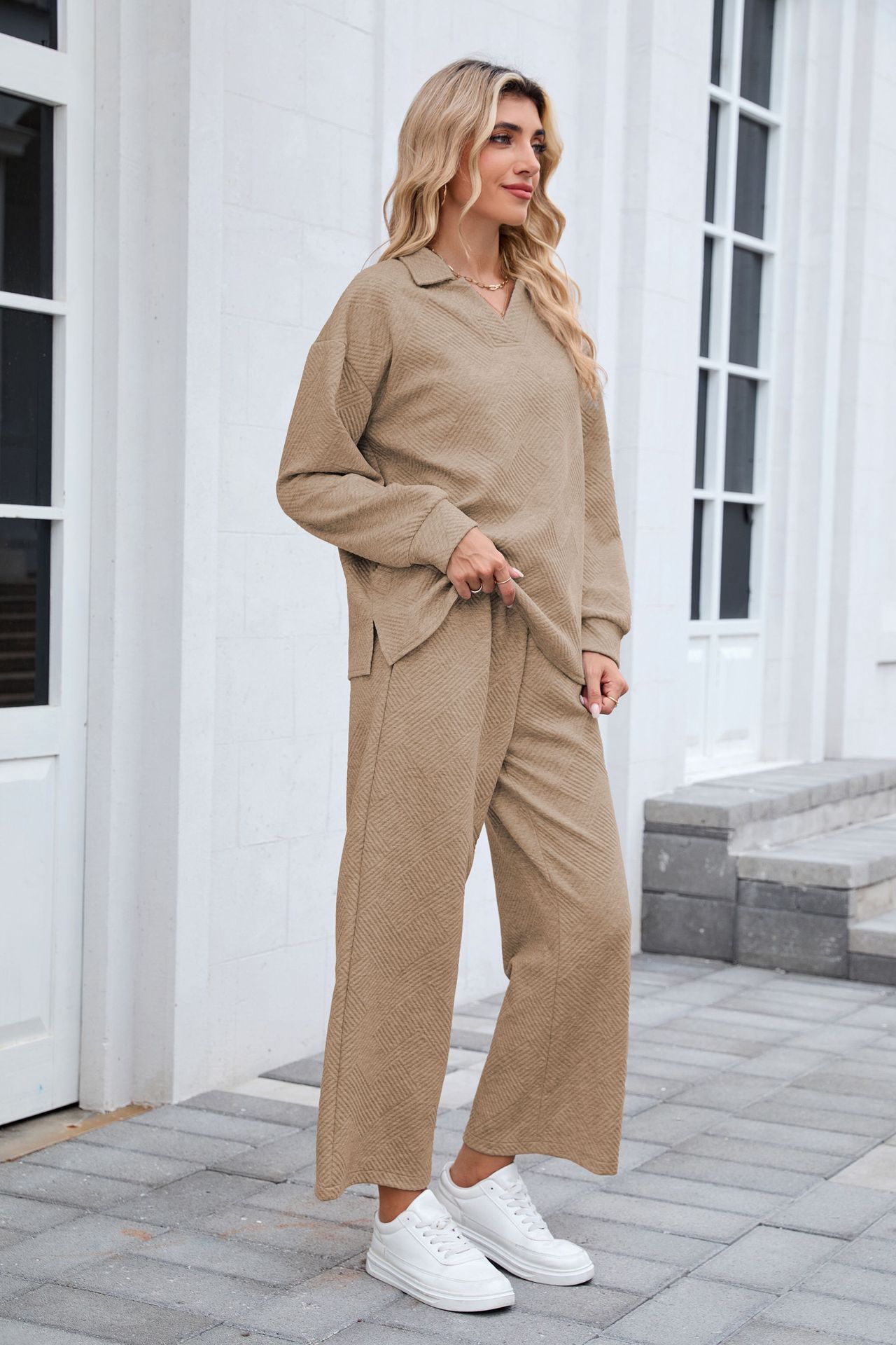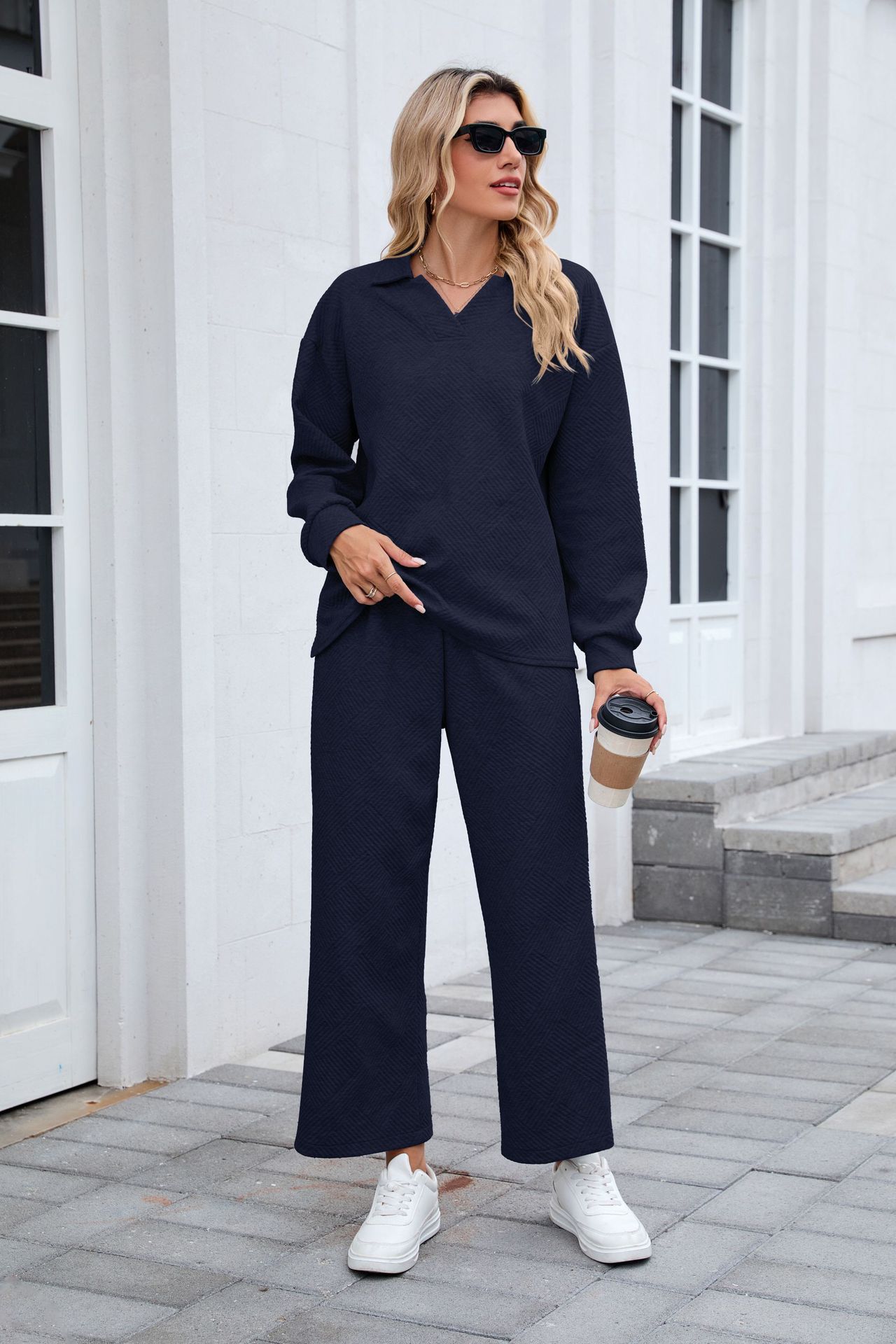- ~ Comfort Fit – Elastic waist cropped pants + regular long sleeves.